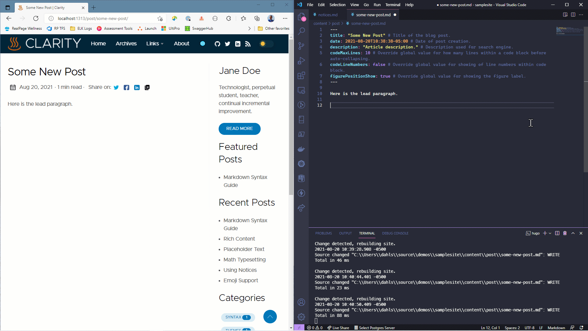 If you're using VS Code for your editing, copy the .vscode\clarity.code-snippets file into a .vscode root folder on your repo. This will enable you to type note then <tab> then choose with up/down arrows which flavor notice you want, then <tab> again to provide a title, then <tab> to add your content!